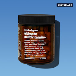 2 capsulesLooking for a comprehensive multivitamin that's optimized to give both men and women the essential vitamins and minerals they need to thrive? Look no further than mbg's ultimate multivitamin+. It features 33 premium ingredients including 14 essential vitamins, 13 minerals (including essential mineral iron support for younger and older women) and 6 botanical bioactives at science-backed doses (no sprinkling here) to provide daily support for immunity, brain health, heart health, and more. This cutting-edge supplement is stored in a UV-protective, eco-friendly amber glass jar and optimized for bioavailability, bioactivity, and gentleness. Just two vegan capsules a day helps you mind your nutrient gaps, and enjoy an array of premium longevity botanicals (master antioxidant glutathione, resveratrol, piperine, and a bouquet of carotenoids lutein, zeaxanthin, and lycopene) to boot.*
